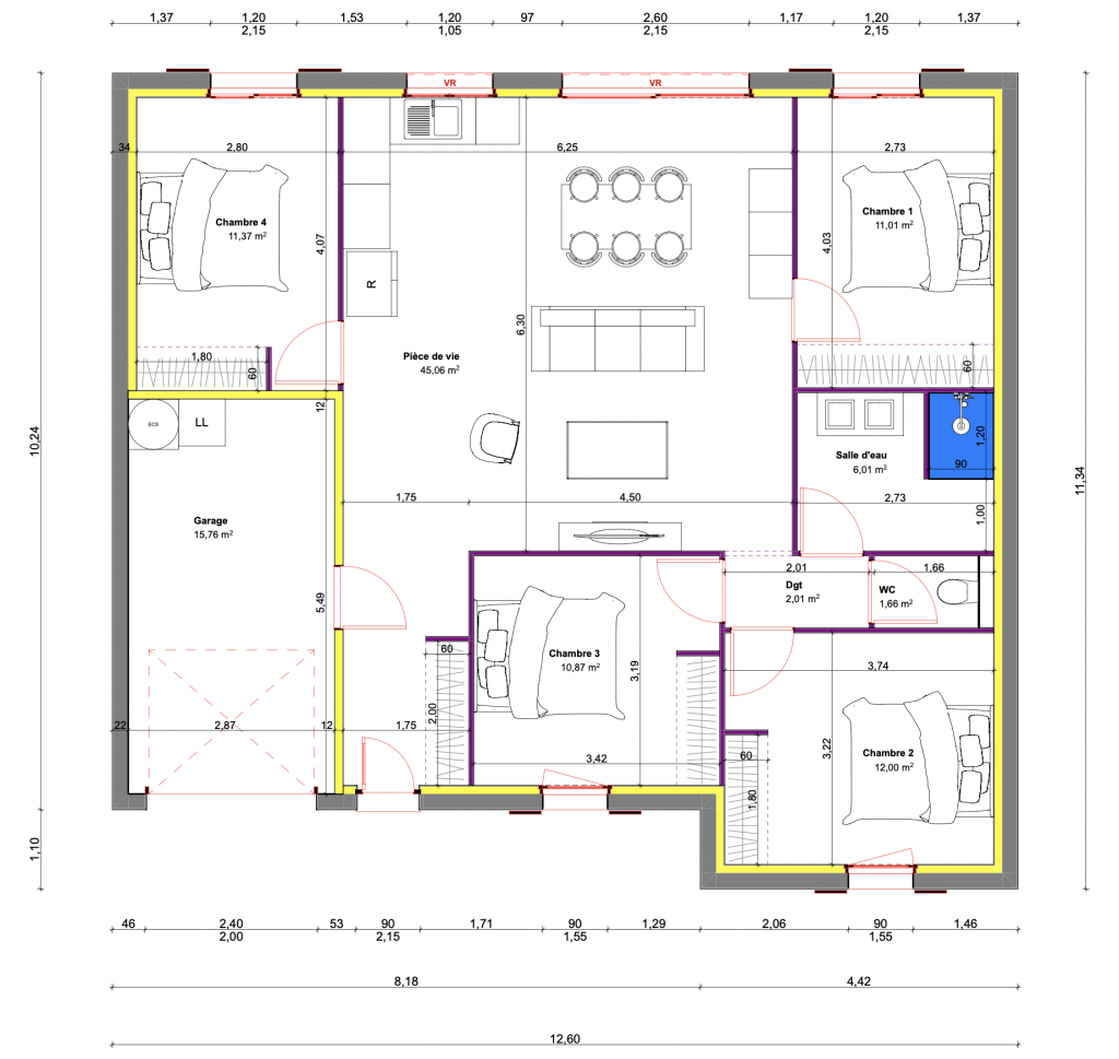 • Un garage intégré de 15,76 m², accessible directement depuis l’intérieur, parfait pour stationner ou stocker.