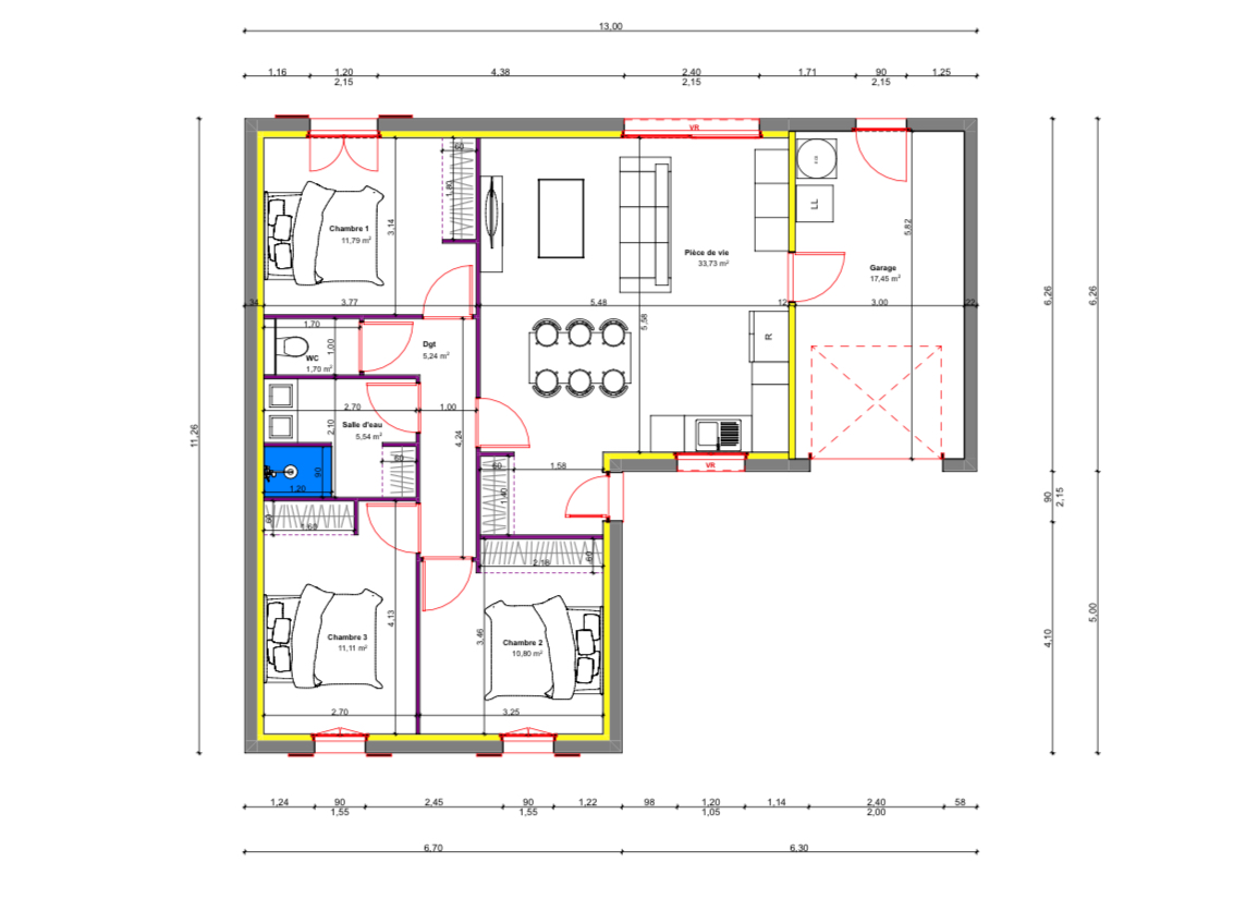 • Construction en L : favorise une meilleure séparation entre l’espace jour et l’espace nuit.